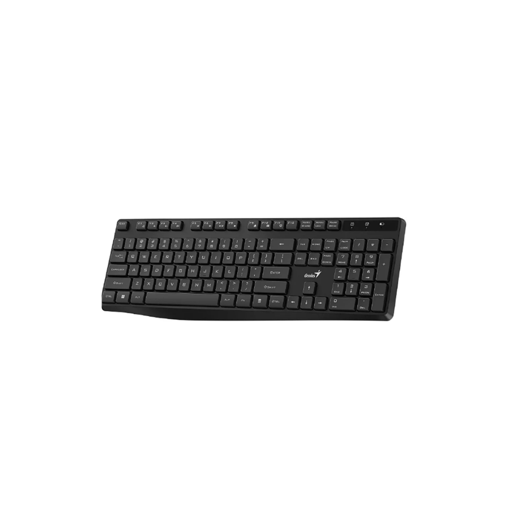 | – El teclado completo en tamaño compactoahorra espacio en el escritorio. Cuenta con teclado numérico, 11 teclas multimedia, indicador de baja bateria | |